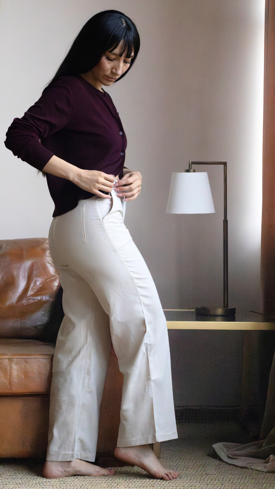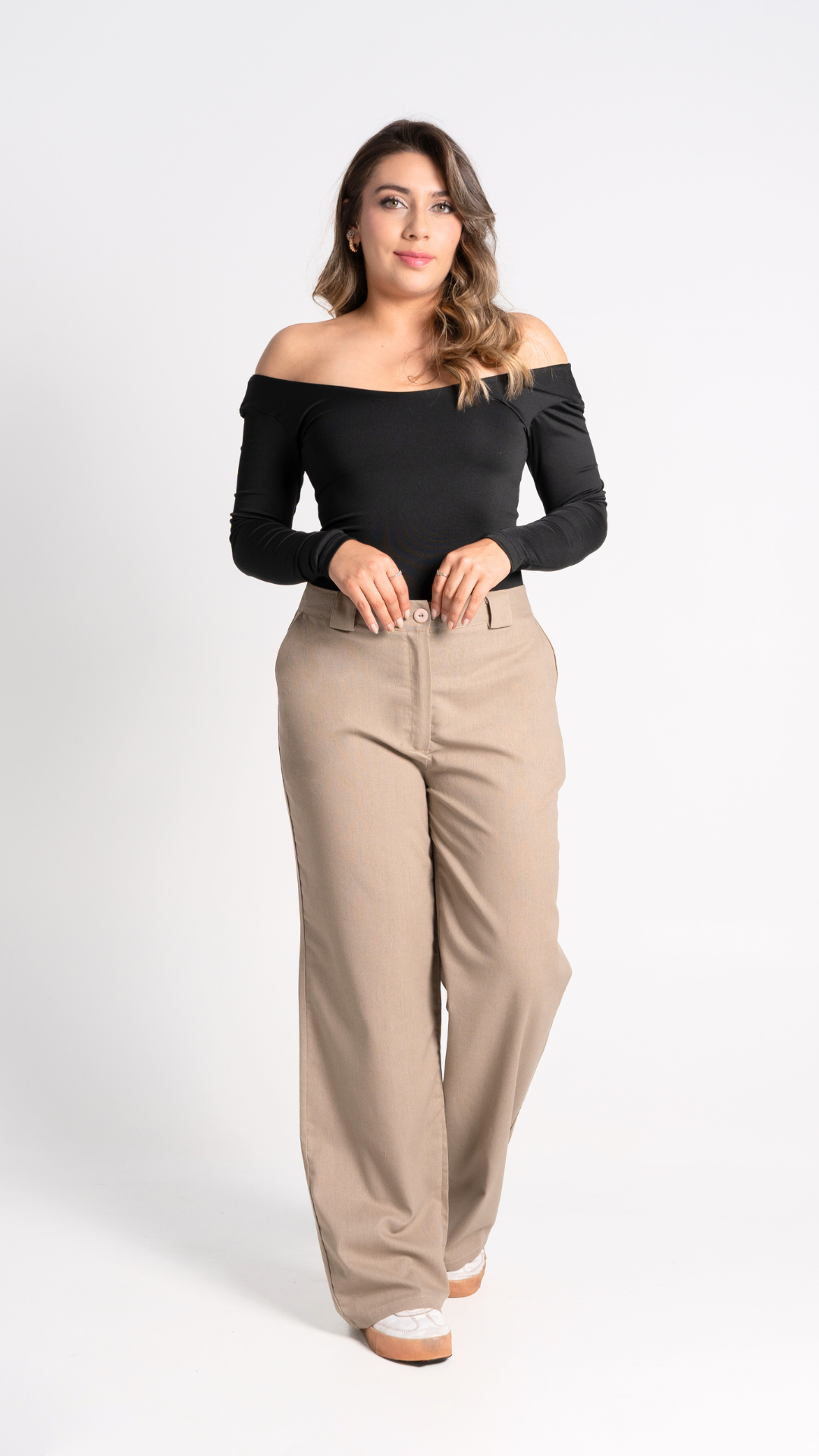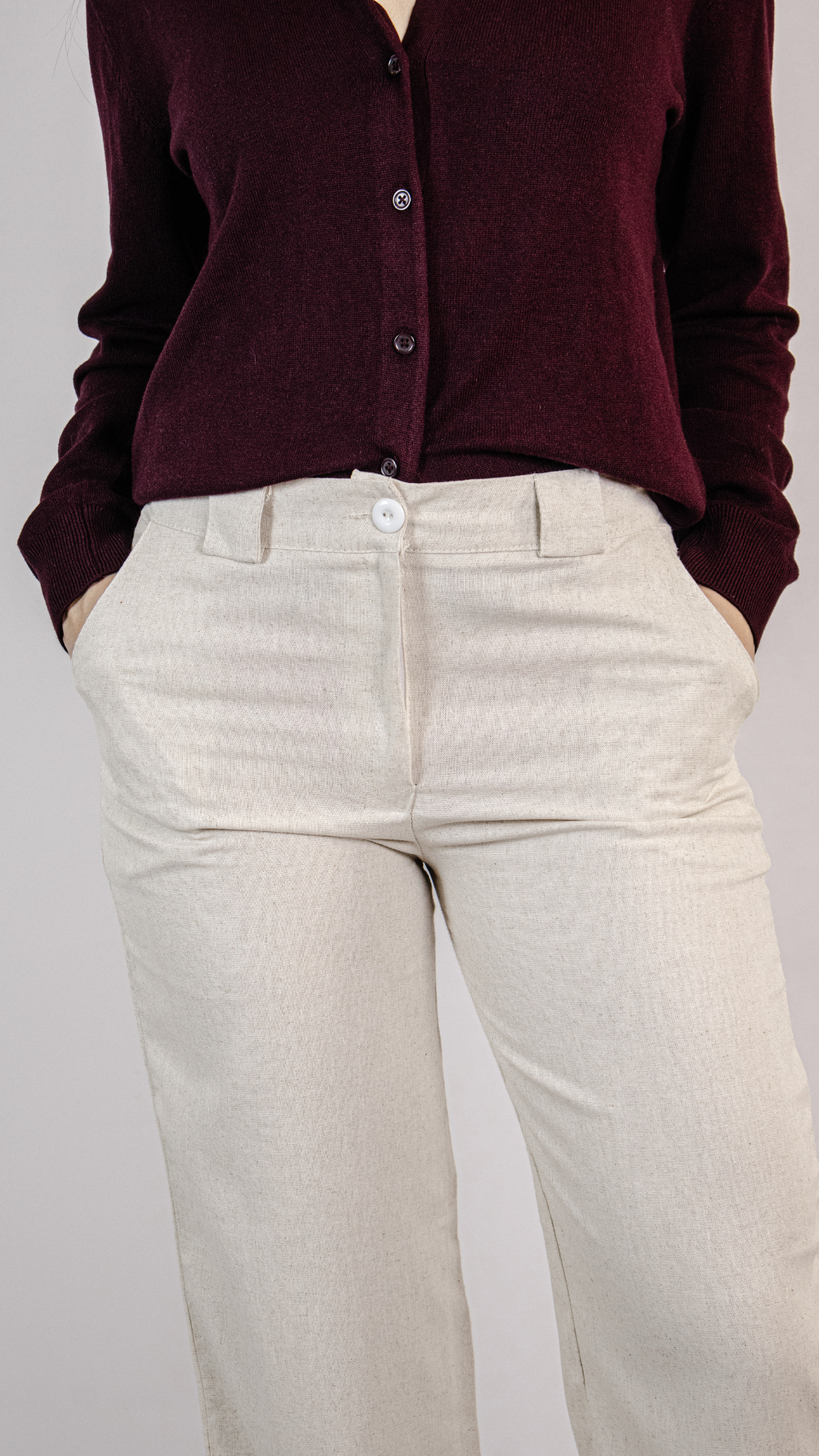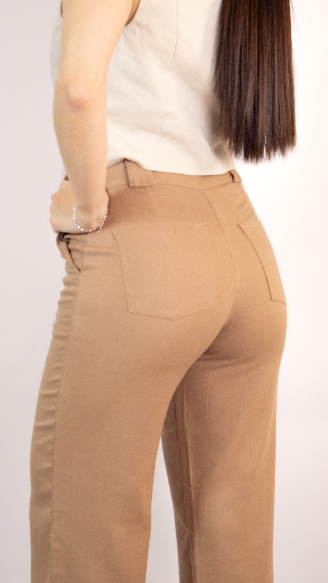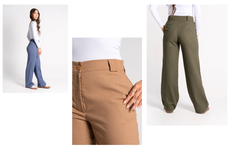 Pantalón Barcelona, 82% Lino, 18% Rayon, tiro alto, 3 tonos disponibles, bota recta. Cierre frontal, bolsillos laterales y traseros. La modelo mide 1.68 cm y usa talla 6.
