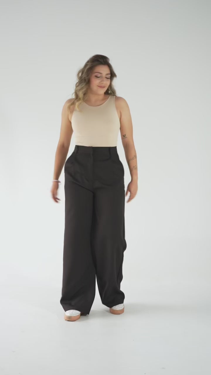 Pantalon Kyoto 95% Lino, 5% Spandex, tiro alto y bota recta. Cierre frontal y Bolsillos laterales. Detalle de pinzas. Cierre en delantero con cremallera y gancho. Disponible en varios colores.