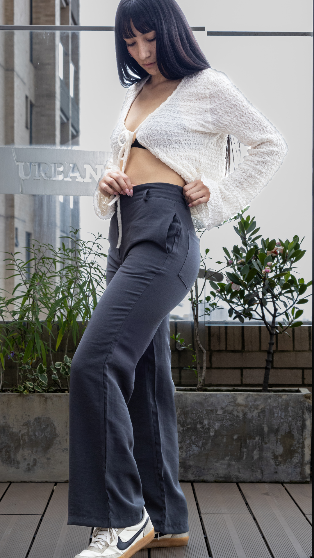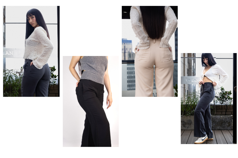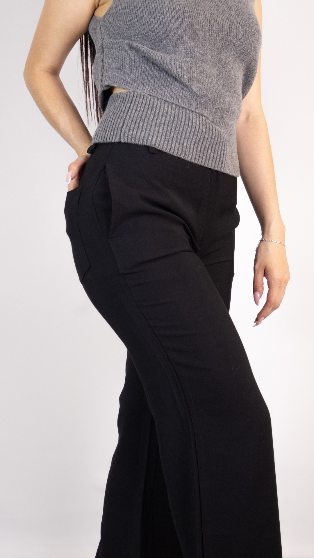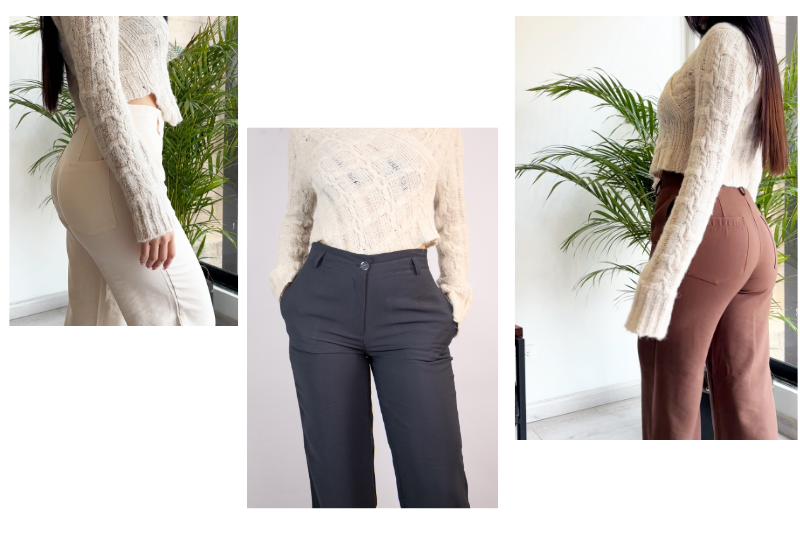 Pantalón Milan, 8% Poliester, 92% Rayon, tiro alto, 4 tonos disponibles, bota recta. Cierre frontal, bolsillos laterales y traseros. La modelo mide 1.68 cm y usa talla 6.